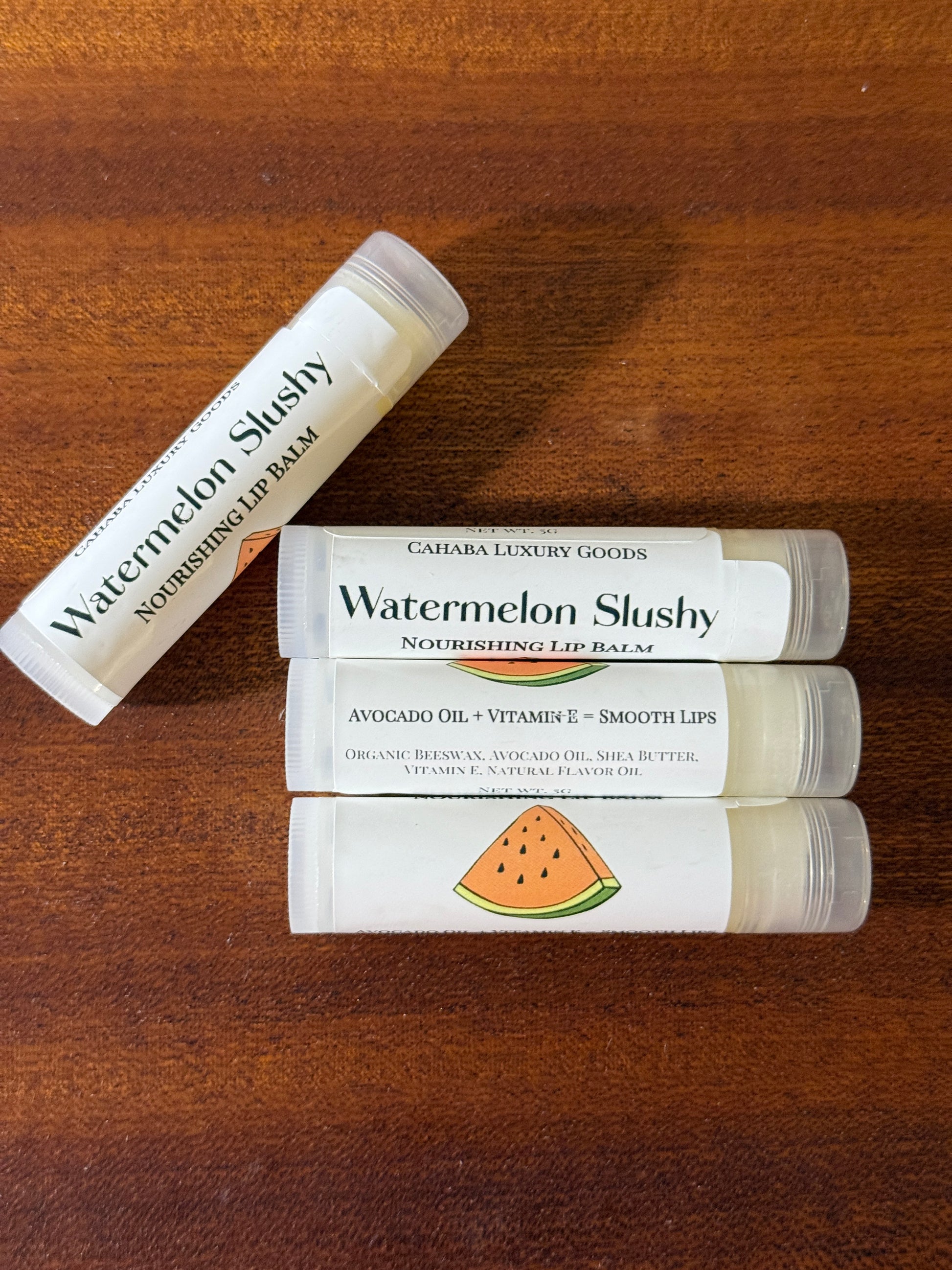 Jojoba Oil, shea butter, organic beeswax, vitamin e, natural flavor oil