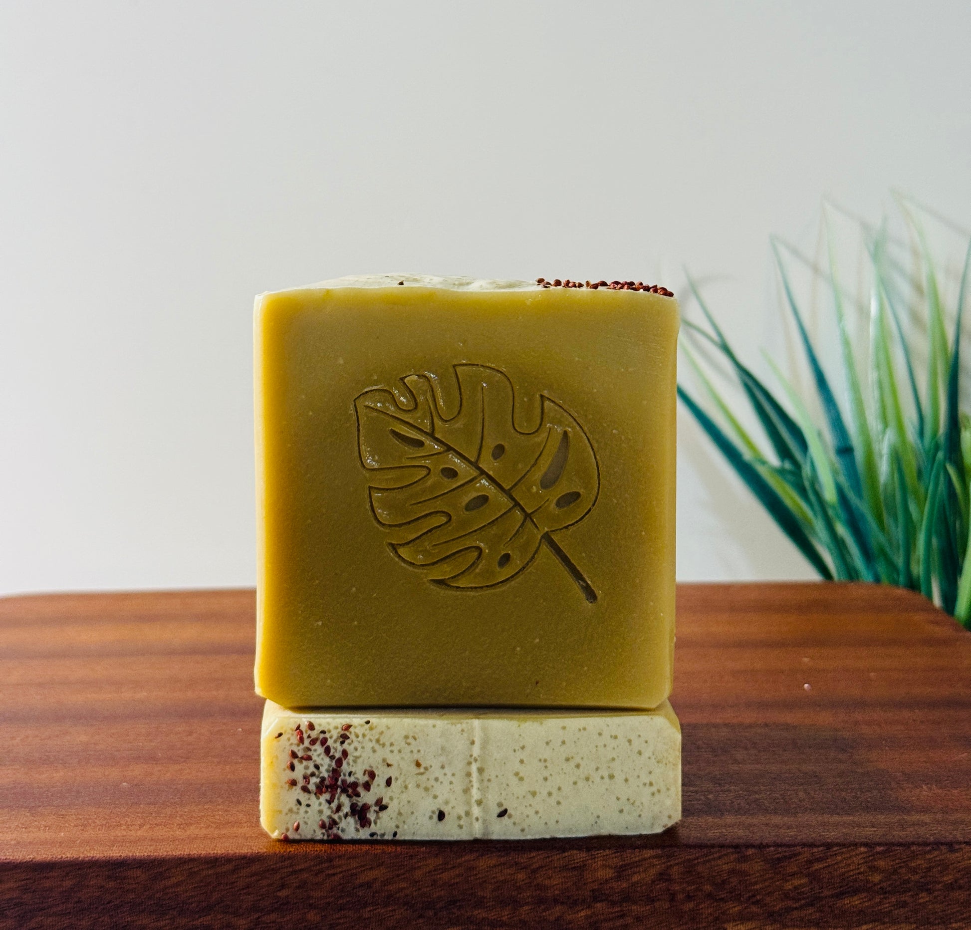 Ingredients: Water, Kokum Butter, Olive Oil, Shea Butter, Palm Oil, Babassu Oil, Castor Oil, Tea tree essential Oil, Lye, Goat milk Powder, Collated Oatmeal, Sodium Lactate, Mica, Cranberry Seeds